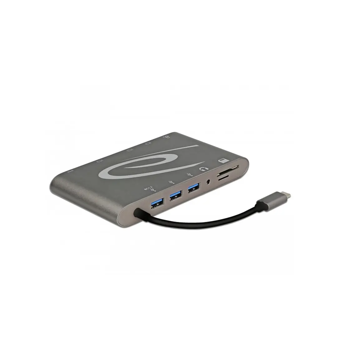 Esta base de acoplamiento de Delock se puede conectar a un equipo mediante un puerto Modo Alt USB-C™ o Thunderbolt™ 3 y proporciona diversas interfaces. Se pueden utilizar dos monitores simultáneamente en las salidas mini DisplayPort y HDMI; como alternativa, también se puede utilizar un solo monitor en la salida VGA. Tres puertos USB Tipo-A integrados permiten el uso de periféricos y conexiones para auriculares y red Gigabit, así como un lector de tarjetas SD y Micro-SD, completan las características. Con una fuente de alimentación USB-C™, los equipos portátiles, como MacBook o Chromebook, se puede encargar durante el funcionamiento.