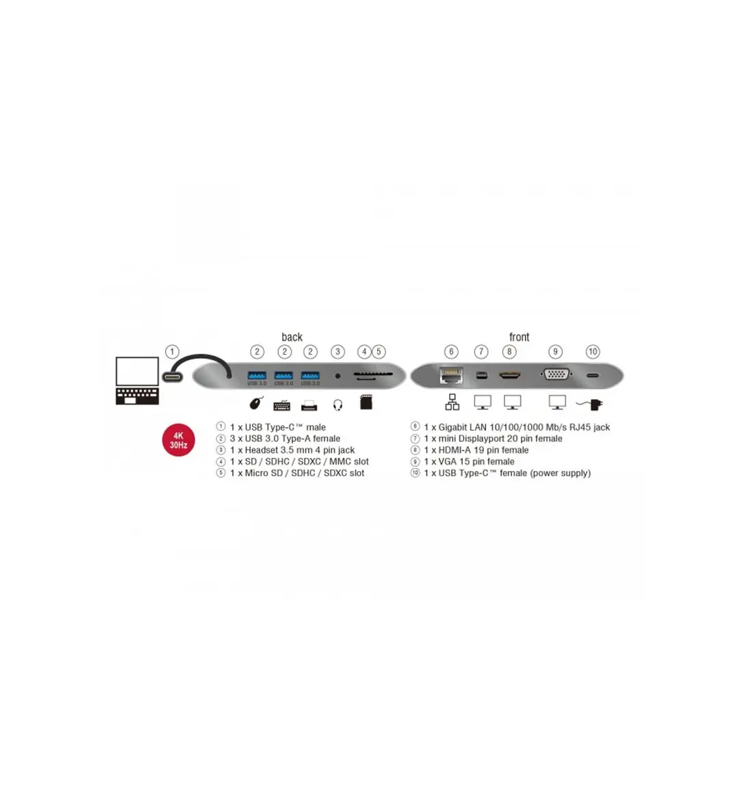 Base de acoplamiento USB Type-C™ 3.1 4K 30 Hz