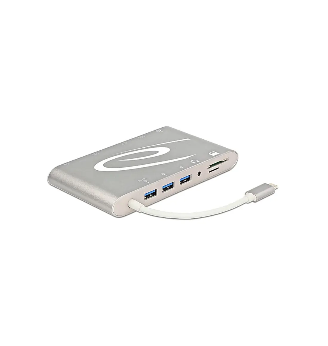 Esta base de acoplamiento de Delock se puede conectar a un equipo mediante un puerto Modo Alt USB-C™ o Thunderbolt™ 3 y proporciona diversas interfaces. Se pueden utilizar dos monitores simultáneamente en las salidas mini DisplayPort y HDMI; como alternativa, también se puede utilizar un solo monitor en la salida VGA. Tres puertos USB Tipo-A integrados permiten el uso de periféricos y conexiones para auriculares y red Gigabit, así como un lector de tarjetas SD y Micro-SD, completan las características. Con una fuente de alimentación USB-C™, los equipos portátiles, como MacBook o Chromebook, se puede encargar durante el funcionamiento.