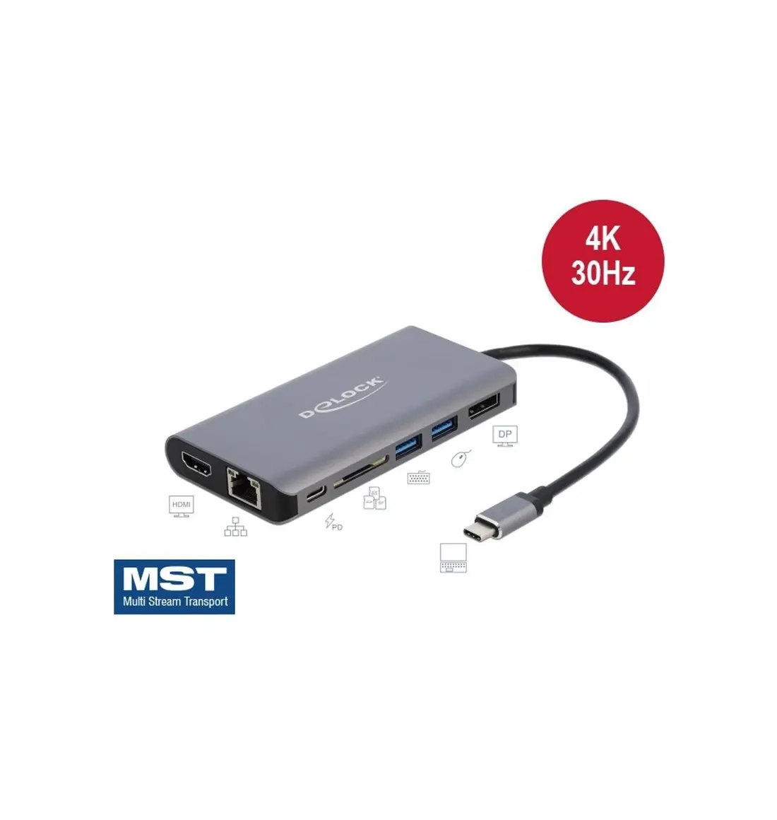 El producto es un concentrador MST y admite la configuración de escritorio extendida de DisplayPort. Esto permite que múltiples monitores se combinen en una gran pantalla. De esta forma, la estación de acoplamiento admite una resolución máxima de hasta 1080p por monitor.