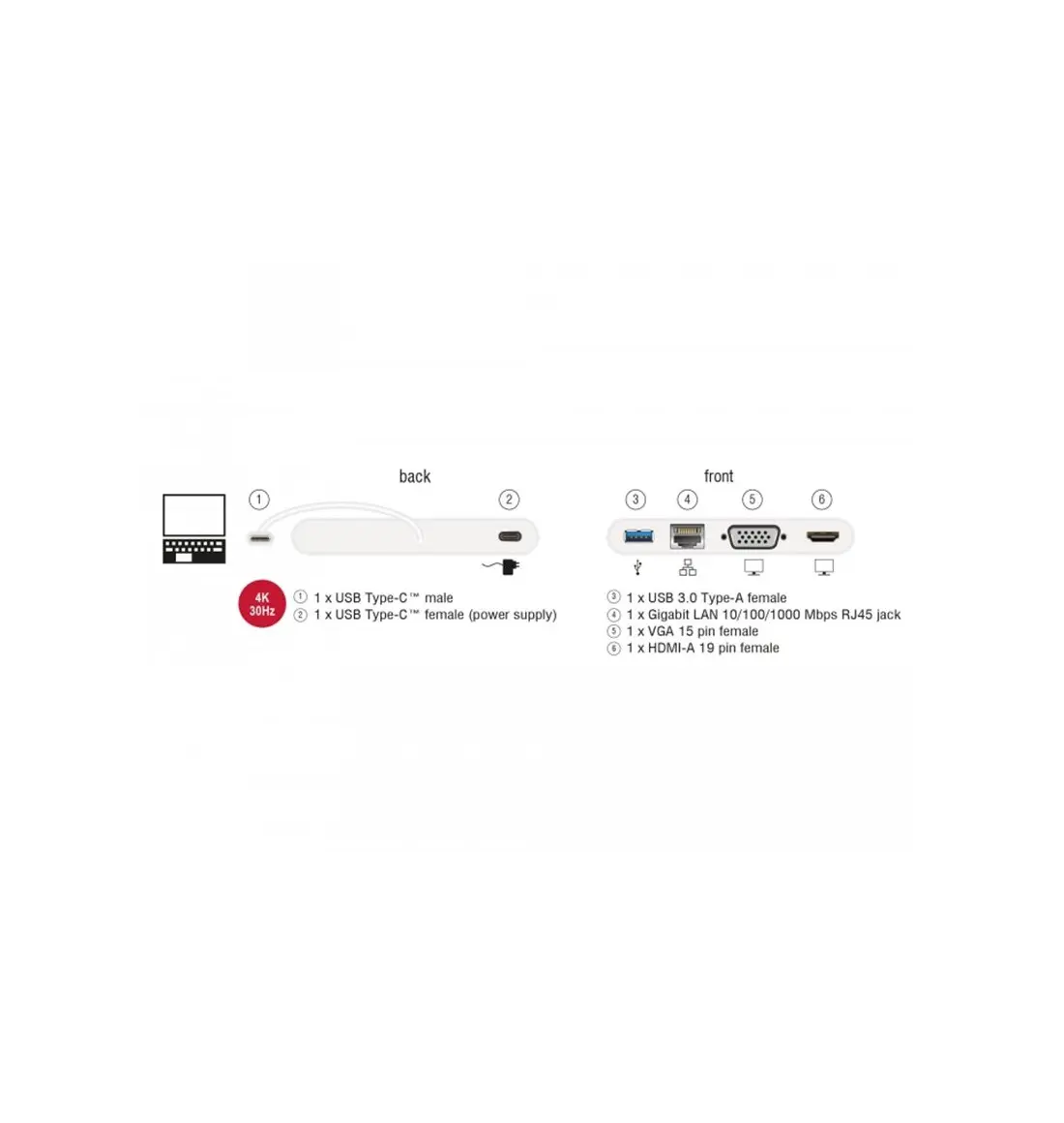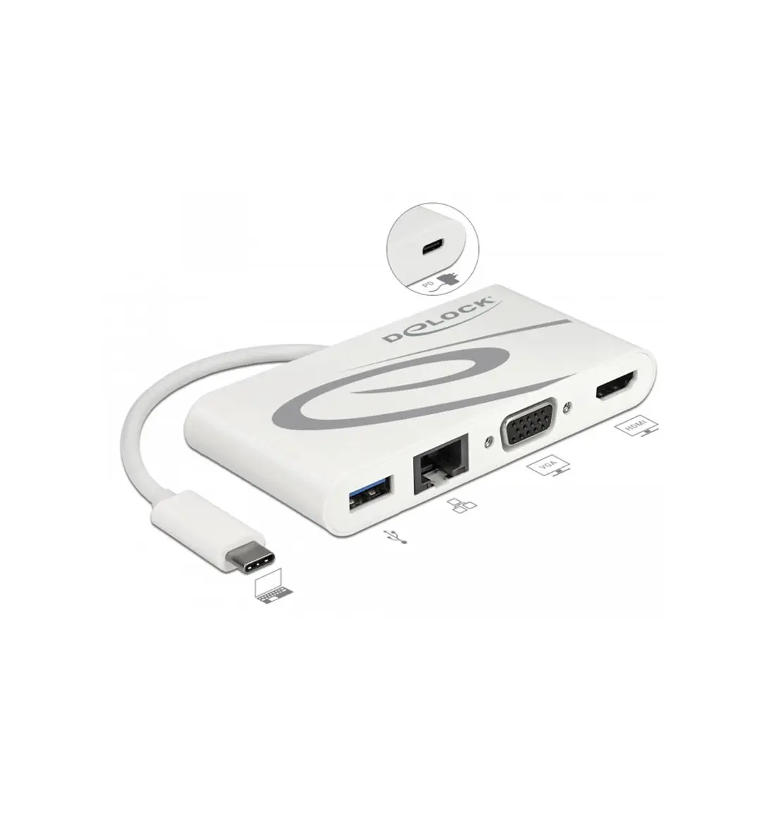 Estación de acoplamiento USB Type-C 3.1 HDMI 4K 30 Hz + VGA + LAN + USB PD