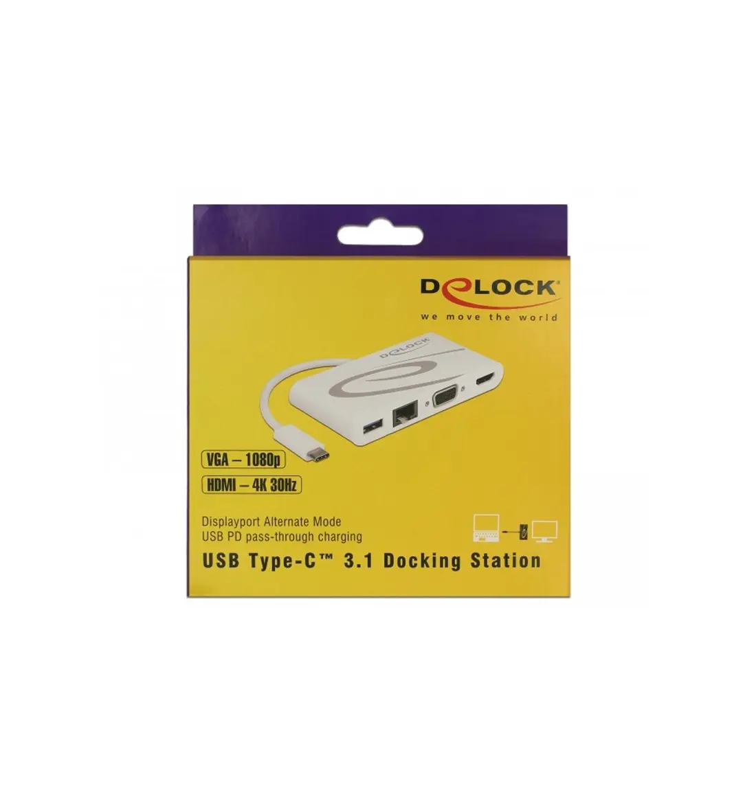 Esta base de acoplamiento de Delock se puede conectar a un equipo mediante un puerto Modo DP Alt USB-C™ o Thunderbolt™ 3 y proporciona diversas interfaces. Un monitor puede funcionar en la salida HDMI o VGA. Un puerto USB Tipo-A incorporado permite el uso de periféricos. Con una fuente de alimentación USB-C™, los equipos portátiles, como MacBook o Chromebook, se puede encargar durante el funcionamiento.