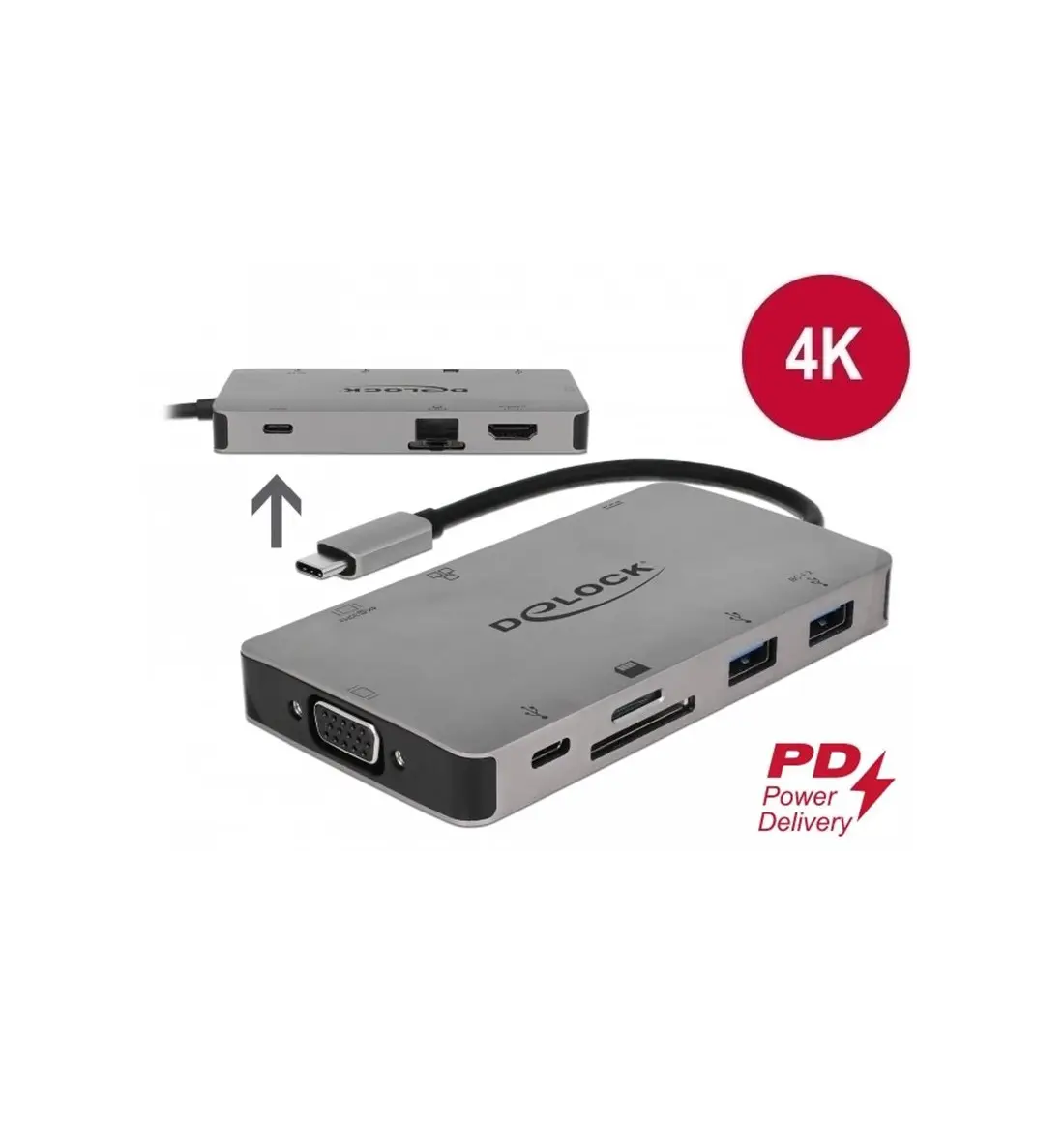 Estación de acoplamiento USB Type-C 4K - HDMI / VGA / USB 3.1 / SD / LAN / PD 3.0