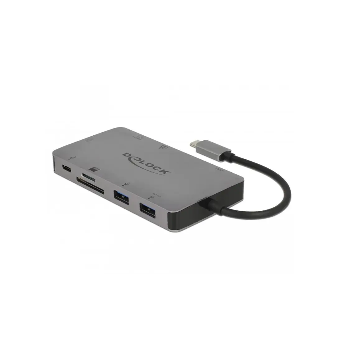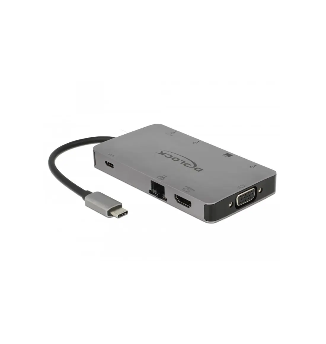 Esta base de acoplamiento de Delock se puede conectar a un equipo mediante un puerto Modo DP Alt USB-C™ o Thunderbolt™ 3 y proporciona diversas interfaces. Un monitor puede funcionar en la salida HDMI o VGA. Los tres puertos USB incorporados permiten el uso de periféricos, y las conexiones para redes de gigabits, así como un lector de tarjetas SD / micro SD, completan las funciones.