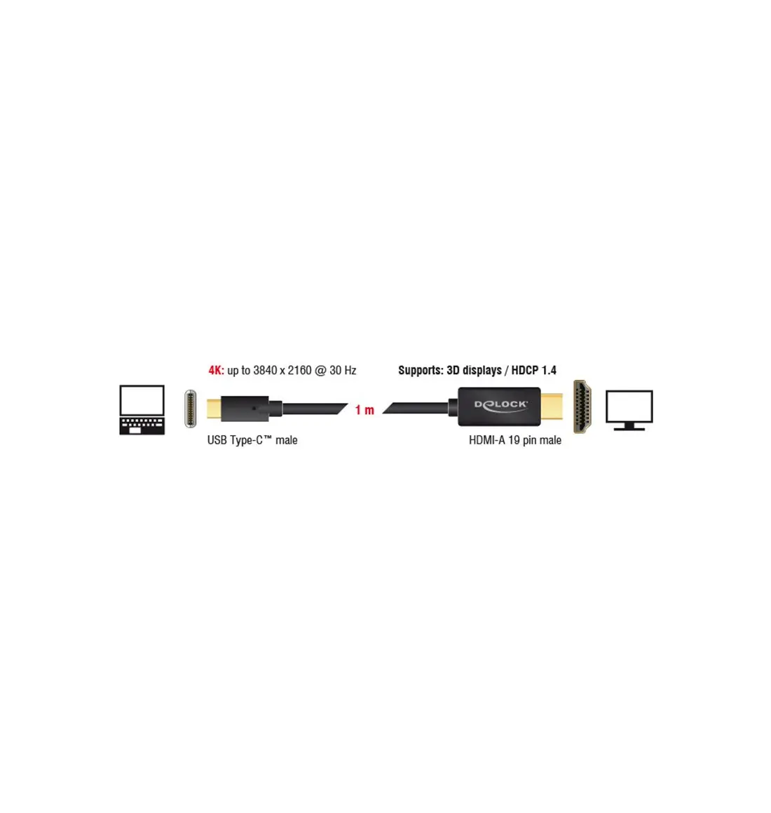 Cable USB Type-C™ macho - HDMI macho (modo alternativo DP) 4K 30 Hz de 1 m negro
