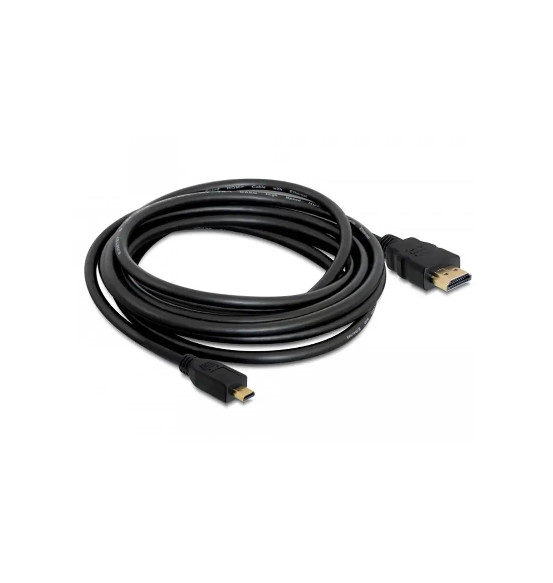 This High Speed HDMI with Ethernet cable by Delock complies with the latest HDMI standard and combines fast data transfer as well as audio-/video- and internet connection. The micro HDMI-D connector is especially designed for the latest mobile phone generation and digital cameras end can be used for data transfer, e.g. videos, pictures etc. Furthermore you can connect your mobile phone with internet function to your TV in order to display the internet picture on a bigger screen.